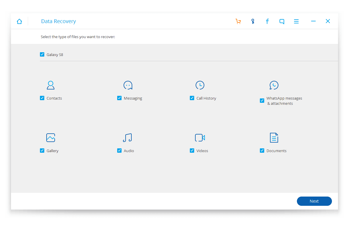 - Information technology has a uncomplicated and intuitive interface with a handy recovery wizard. In other words, yous don't demand any special knowledge to work with this tool; all instructions and tips are given in the Dr. Fone window.